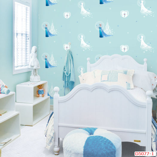 Mẫu 8: Giấy dán tường hình công chúa elsa được sử dụng rất nhiều trong phòng ngủ bé gái