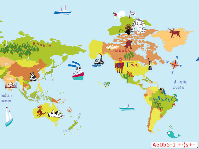 Mẫu giấy dán tường bản đồ thế giới đẹp mắt - mã A5055-1