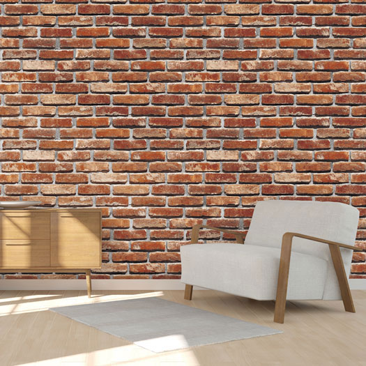 Mẫu 1: Giấy dán tường giả gạch màu nâu tạo nên nét đẹp riêng trong phòng khách