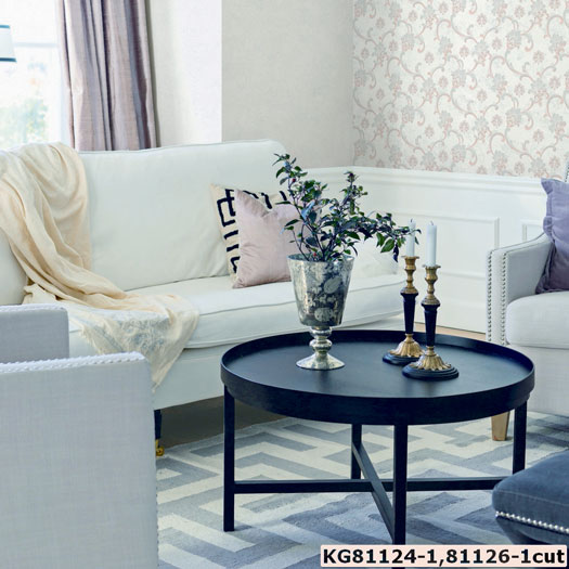 Mẫu 3: Giấy dán tường có họa tiết màu trắng sử dụng nhiều trong không gian phòng khách