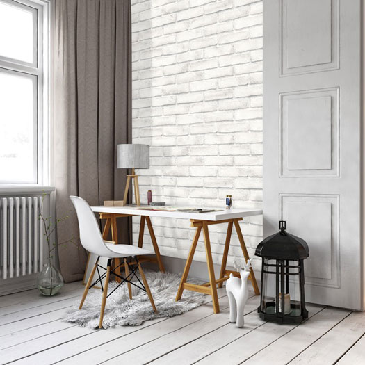 Mẫu 7: Giấy dán tường giả gạch màu trắng được sử dụng trang trí góc học tập