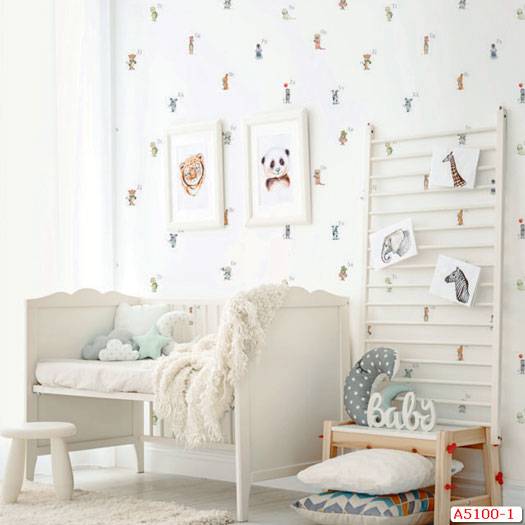 Mẫu 3: Giấy dán tường phòng ngủ bé gái họa tiết hình động vật đáng yêu - mã A5100