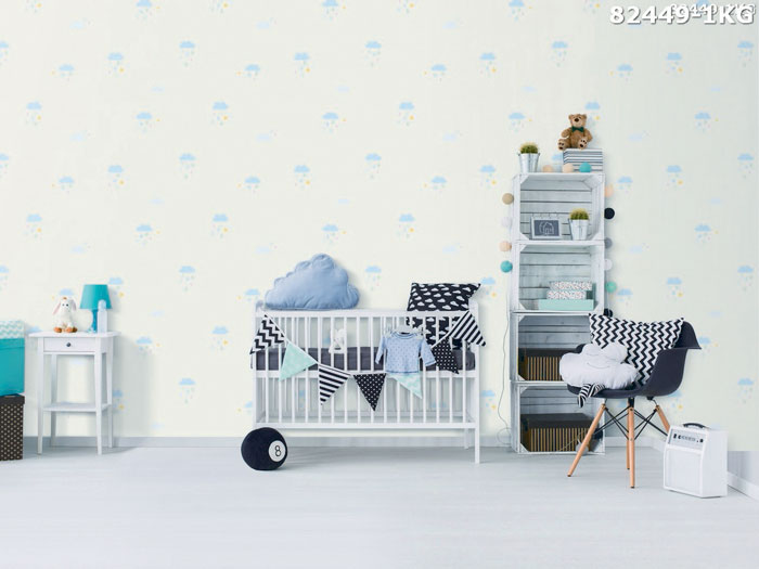 Góc phòng ngủ cho bé sơ sinh cũng có thể sử dụng giấy dán tường Hàn Quốc