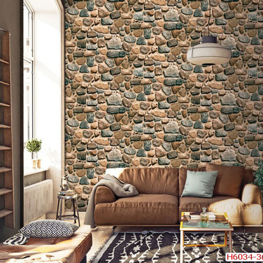 Mẫu giấy dán tường giả đá tạo cảm giác tự nhiên cho không gian phòng khách