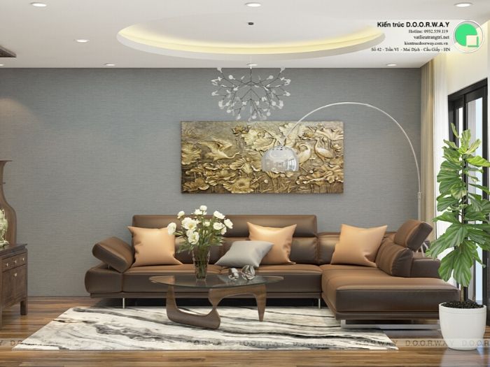 DOORWAY nhận thiết kế và thi công giấy dán tường phòng khách trọn gói